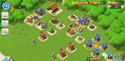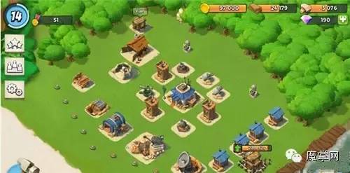 缺点:这个海岛奇兵防御阵型如果有某一个方向火力薄弱,或者是资源建筑设施比较集中,就有可能成为敌人部队的突破口。如果无法升级建筑或者加强防守,就有可能被血量较多的敌人分散突破,而且过于集中的位置会被火炮轰炸。