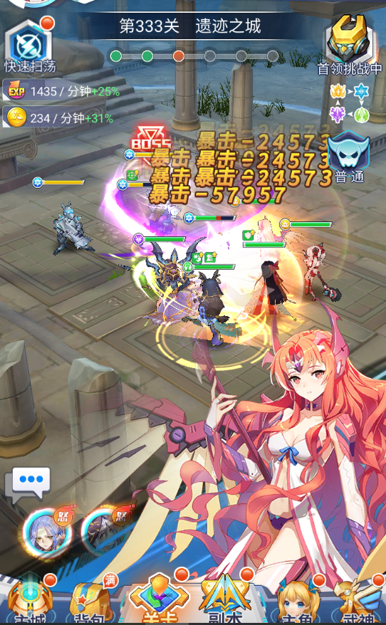 关卡是英雄大大们升级等级和活动金币重要来源之一鸭,每击杀完一定数量的小怪就会进入首领挑战,挑战成功可以获得高额的经验和金币加成(*^▽^*)。