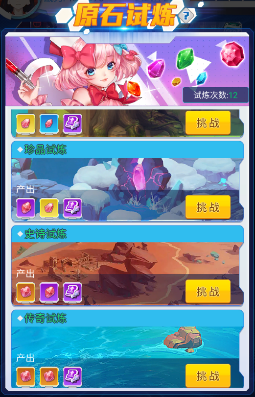 原始试炼需要在英雄大大~通关第38关后开启,是原石提升等级经验、品阶重要的来源。