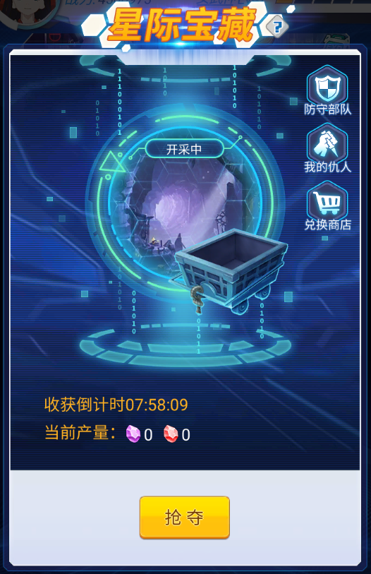 星际宝藏在需要在英雄大大~人物等级到达1转50级后开启,采矿获得的石头可以在商城兑换金币、钻石等。