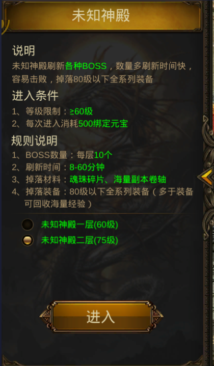6、BOSS掉落魂珠碎片、海量副本卷轴和80级以下各职业全部装备,多于的装备可通过回收获得角色升级经验