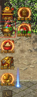 点击主界面左上方的“探宝”按钮即可进入探宝系统。