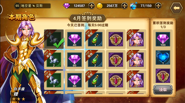 圣斗士的强大离不开每日辛勤的磨砺,同样的玩家们想要提升自己的战斗力,也不要忘记每天的签到。每日签到的奖励都不相同,不仅有金币、材料,还有钻石的奖励哦。而且不单单是每日签到可以领取奖励,累积签到达到指定次数也可以领取到不错的奖励哦。