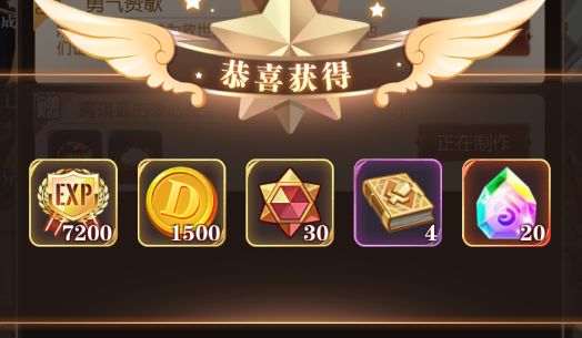无须任何操作,提交背包材料即可完成任务,任务奖励如下 。依次为账号经验,金币,荣誉,角色经验,钻石。