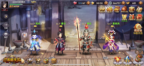 初期跟随新手引导了解“关卡玩法”与“战斗操作”,并领取完“新手福利”后,我们便可以对阵容进行更深度的规划啦!我们先通关第一章,收获通关及宝箱奖励,积攒一定的装备和强化材料后便前往“阵容”界面对武将进行强化!