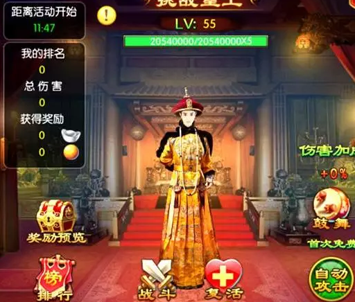 最后,关于如何在推倒皇帝中,提高总伤害技巧,除了自身战斗力外,各位小主还可以利用“复活”和“鼓舞”两大功能提高对皇上造成的总伤害,从而获取更高排名。