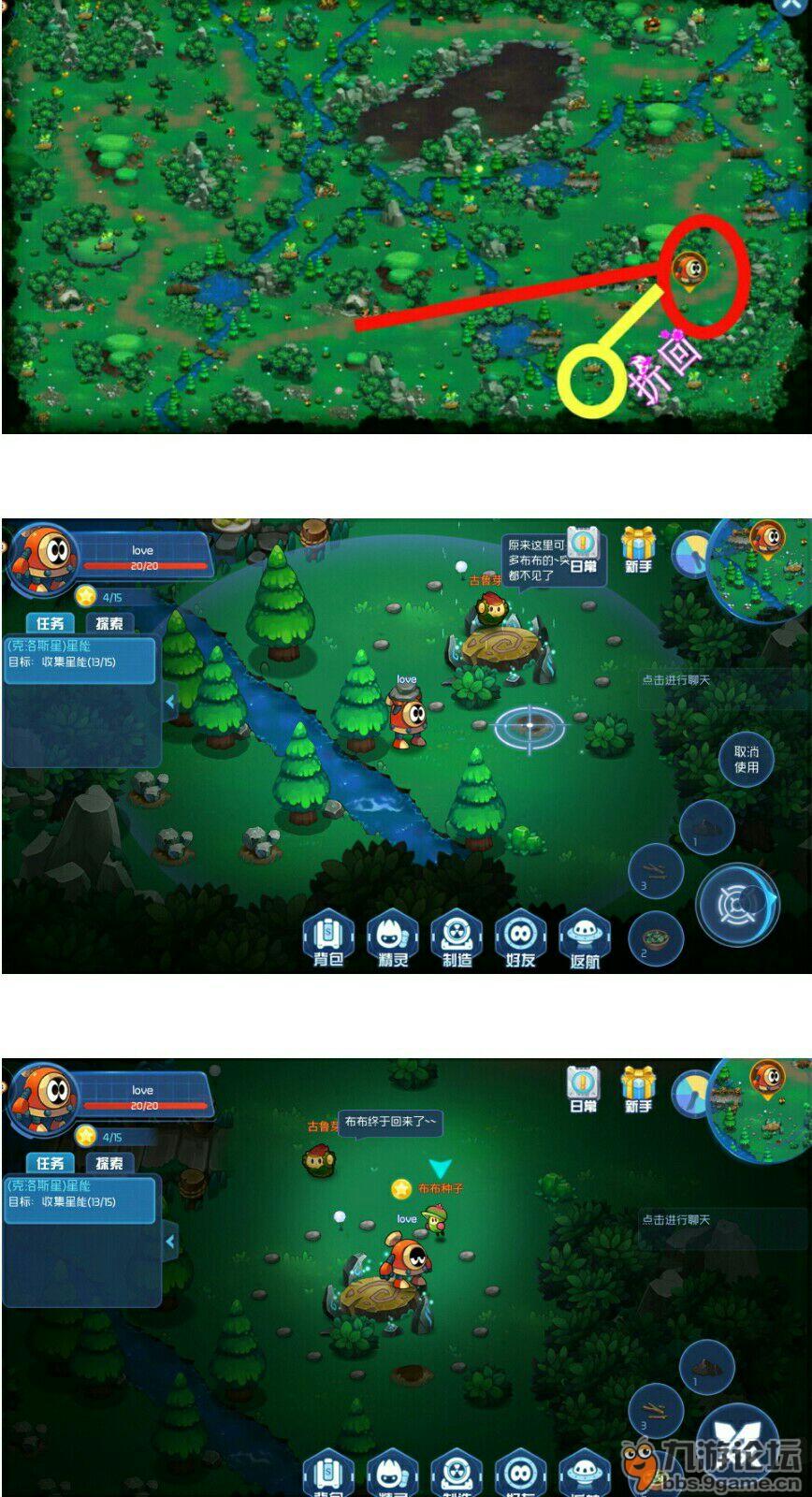 折回到上图中标记的地点会看到一个小石洞,然后把小石块扔进小石洞里就能见到布布种子啦。