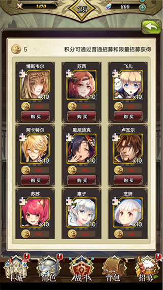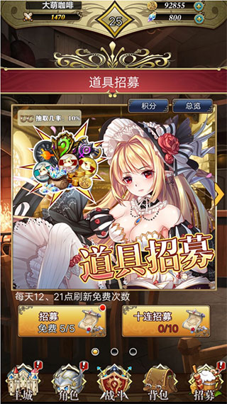 获得新英雄的最快途径,每日都有赠送免费的召唤次数。另外每次招募都能获得召唤积分,满足一定的积分后即可购买任意英雄。