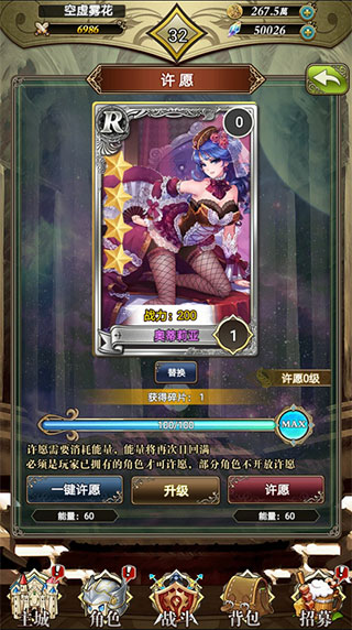在许愿神殿中能消耗能量进行许愿,许愿有几率可以获得自己当前拥有的英雄碎片