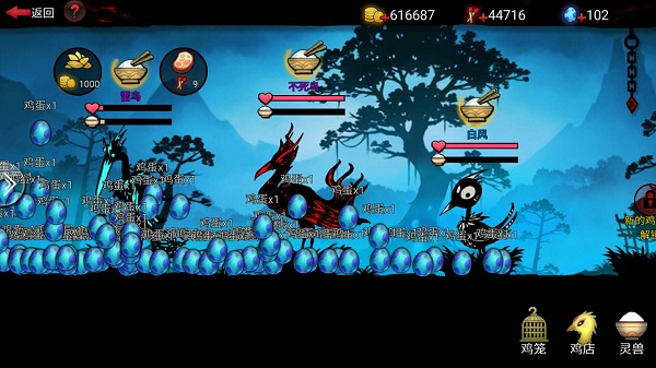不同品质禽类每小时产蛋数量不同,每只禽类每小时会自动孵蛋,也可以通过喂食来提高产蛋速度,当禽类连续孵蛋24小时后就会跑路。产出的鸡蛋将会在后续开启的灵兽系统产生大用!