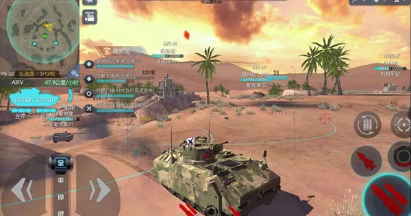 敌人整体实力并不强,直升机在导弹车上方基本不用动,坦克和装甲车自行攻击目标即可。