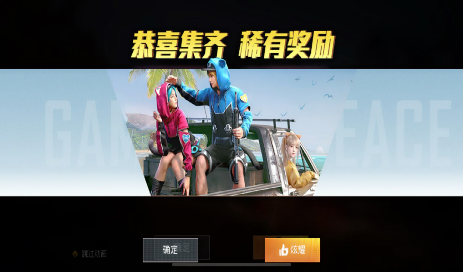 如图所示,这位玩家用了3个648抽满该系列所有皮肤,获得光子发来8个“金字奖励”:恭喜集齐,稀有奖励!