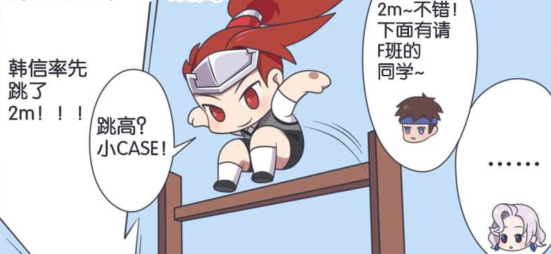 第一项比赛项目是跳高,韩信率先跳出了两米,这个成绩是很不错的。两米足有一个多人高,能跳到这个程度绝地是很厉害的。对F班来说是一种压力,但他们让人很意外。