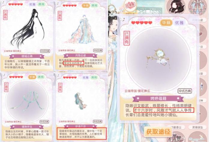这套中的主人公的身份不同寻常,一出生就注定的了她非凡的命运,是不是有仙侠剧那味儿了?她的母亲担心自己的孩子光芒过剩,所以起名“隐娘”。隐娘出生时就手握珍珠大小的镜子,随着她的成长,镜子也随着成长。