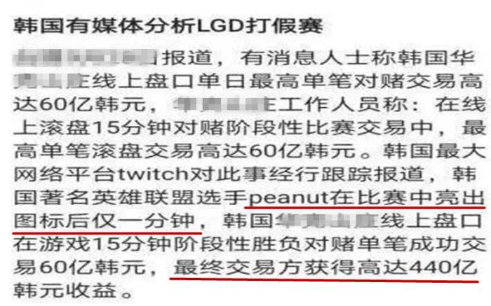 不过在LGD晋级16强后,却有一些不和谐的声音诞生,因为有韩媒爆料,LGD在入围赛前后表现差别大的原因,是因为打野小花生可能打假赛了,并且金额还很大,约和440亿韩元(2.6亿人民币),那么这是怎么一回事,接下来小米就简单的分析一下这份爆料的真假。