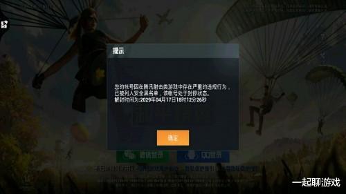 如图所示,这位玩家进入《和平精英》游戏时,光子会发来提示:因在腾讯设计类游戏中存在严重的违规行为,已被列入安全黑名单,处于封停状态,玩家可以在九年之后才能进入游戏。