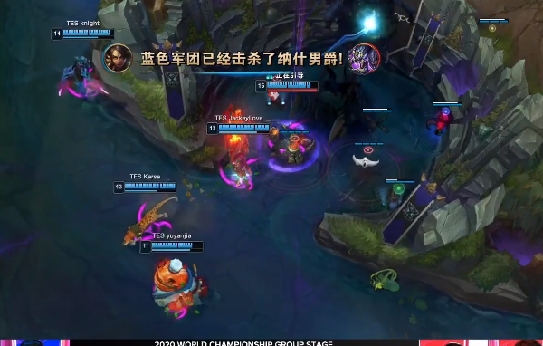卡牌先动手将鳄鱼定住,随后奎因和盲僧跟上,TES见状梦魇和赛娜立马就去支援了,最终梦魇拿到了盲僧的终结人头、赛娜拿到了卡牌的终结人头。随后tes又顺利拿到了大龙,这一波之后tes就彻底起飞了,阿水的赛娜就势不可挡了。