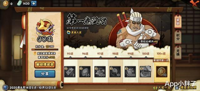 我们可以先来看一下博文里的六个大奖,分别是高招A忍小南、奇拉比、神卡的整卡以及自来也、大蛇丸和波风水门任选其一的25个碎片。如果按照强度来排序的话,我个人认为泳装小南和新春水门的强度优先级是要高于那三个早期的高招A忍,而且也更加适用于现在的决斗场环境。但是,有一点你需要注意,博闻录这个活动是你做了长时间的任务后,再用1680点券买等级才能拿到最终的奖励,而泳装小南这类的点券A忍是不定期返场的,只要你有足够的点券,就可以在返场的时候直接拿下,这就是获取的门槛不同。