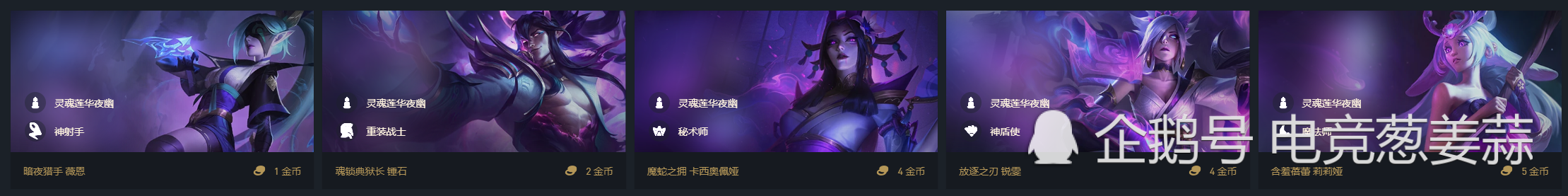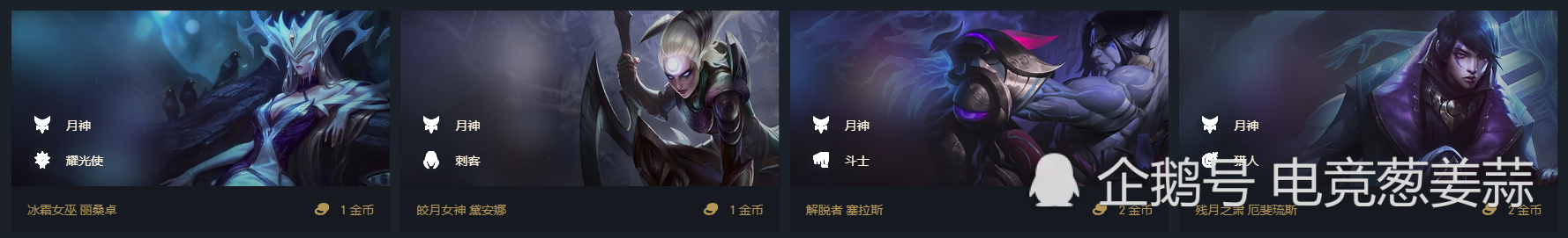黛安娜、丽桑卓、娜美、薇恩、安妮、厄斐琉斯、赫卡里姆、贾克斯、赵信、悠米、慎、李青、永恩;
