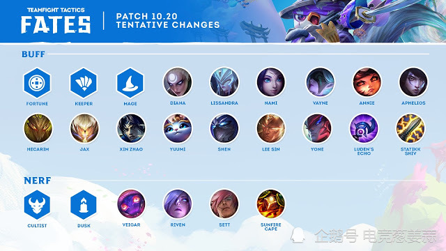 马上美服就要迎来10.20版本更新了,那么在新版本中,云顶之弈中哪些羁绊和英雄得到了削弱或加强呢?让我们一起来看一下新版本的改动情况吧: