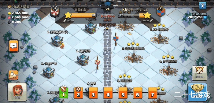 当玩家将大本营升到五星后,投石炮升到2级后,这个时候是最重要的,如果夜世界跟上了,那么应该是六农,这个时候玩家要找到一个很小的部落,用来参加部落战,而联赛就不要在部落里了,可以去打定级的部落,只要是五星大本营,2级投石炮就可以打定级,联赛奖励非常高,为什么让大家打定级呢?因为定级部落是可以升级四王的,这个时候一边参加联赛,一边趟王,这样就能满足玩家的英雄快速升级,当英雄升满级后,也能解放出工人来升级防御了。