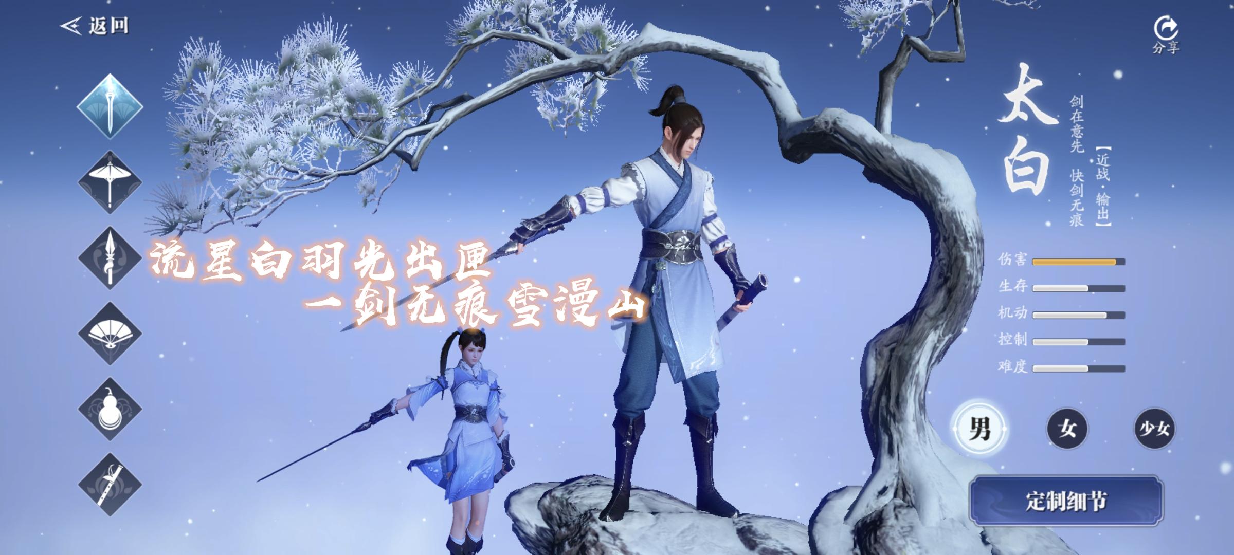 不知道从端游转来手游玩的老玩家,还记得当年太白门派NPC的台词:“谁再叫咱太白狗,定叫他趴在地上滚着走”吗?在天刀手游里,本着强不强只是版本的问题,而帅是一辈子的事,太白剑客就成了玩家数量最多的职业。优点是具备突进技能,团战AOE爆发高,意识手法操作好的玩家可以连招输出成吨伤害。缺点是面板属性和输出能力成正比,如果不氪金装备上不来,就很容易成为刮痧器。另外就是血量低,操作难度高,很吃玩家的操作和意识。