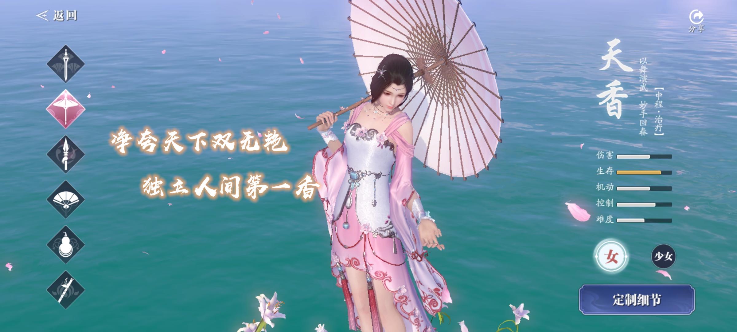 因为天香门派只收女弟子,所以有很多“抠脚大汉”建女号混入天香,再加上天香这个门派爱好跑图,玩家们戏说跑图多了会得脚气,“抠脚香”这个称谓就由此而来。在天刀手游中,天香可以说是一个万金油型的门派。天香技能远近结合,通过快速拔剑可以对近距离的目标进行压制,然后再通过伞舞类技能对远距离目标进行多次的群体打击。另外作为游戏中的“大奶妈”,天香就成了每一个团队中必不可少的一员。当然天香的缺点也很明显,群体治疗量不足,输出打架手短。