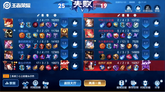 个人观点:在比赛结束之后东皇太一的评分仅有4.7,发挥比较一般。一局游戏三个国服天花板,但还是输掉了比赛,不得不说有些可惜。这局游戏寂然的评分达到了10.2分,比对面的打野更高,可惜后期无法处理孙尚香+太乙的组合,无奈输掉比赛。
