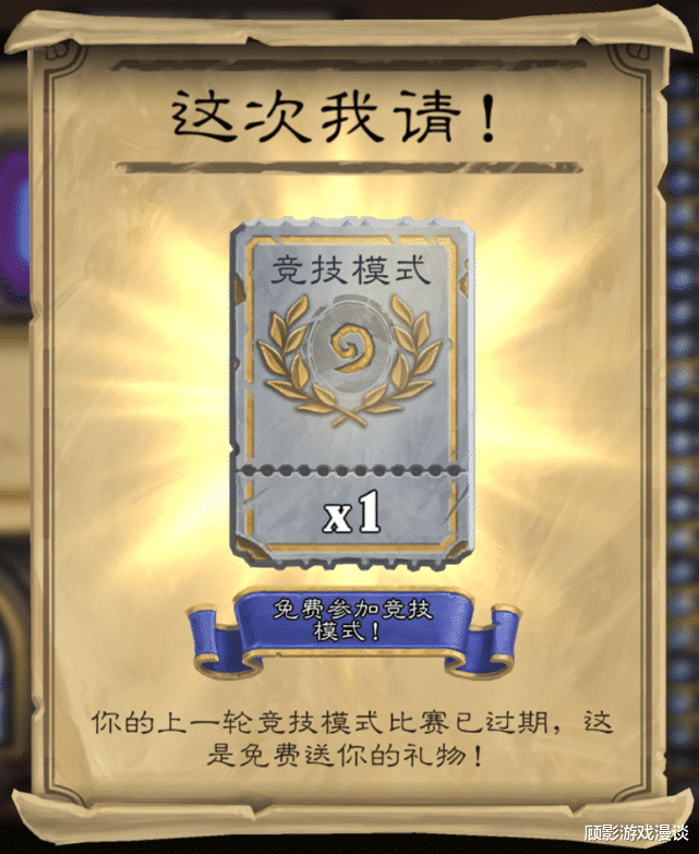 但老玩家都知道,越是这种时候,越是得好好考虑一下。比较常规的做法是,在知道暴雪要强制结算竞技场时(比如说卡池要改,比如说要开新竞技场模式)主动将这一局打到输两次。然后等到强制结算,不仅可以获得有的奖励,还能获得一张新的竞技场门票。