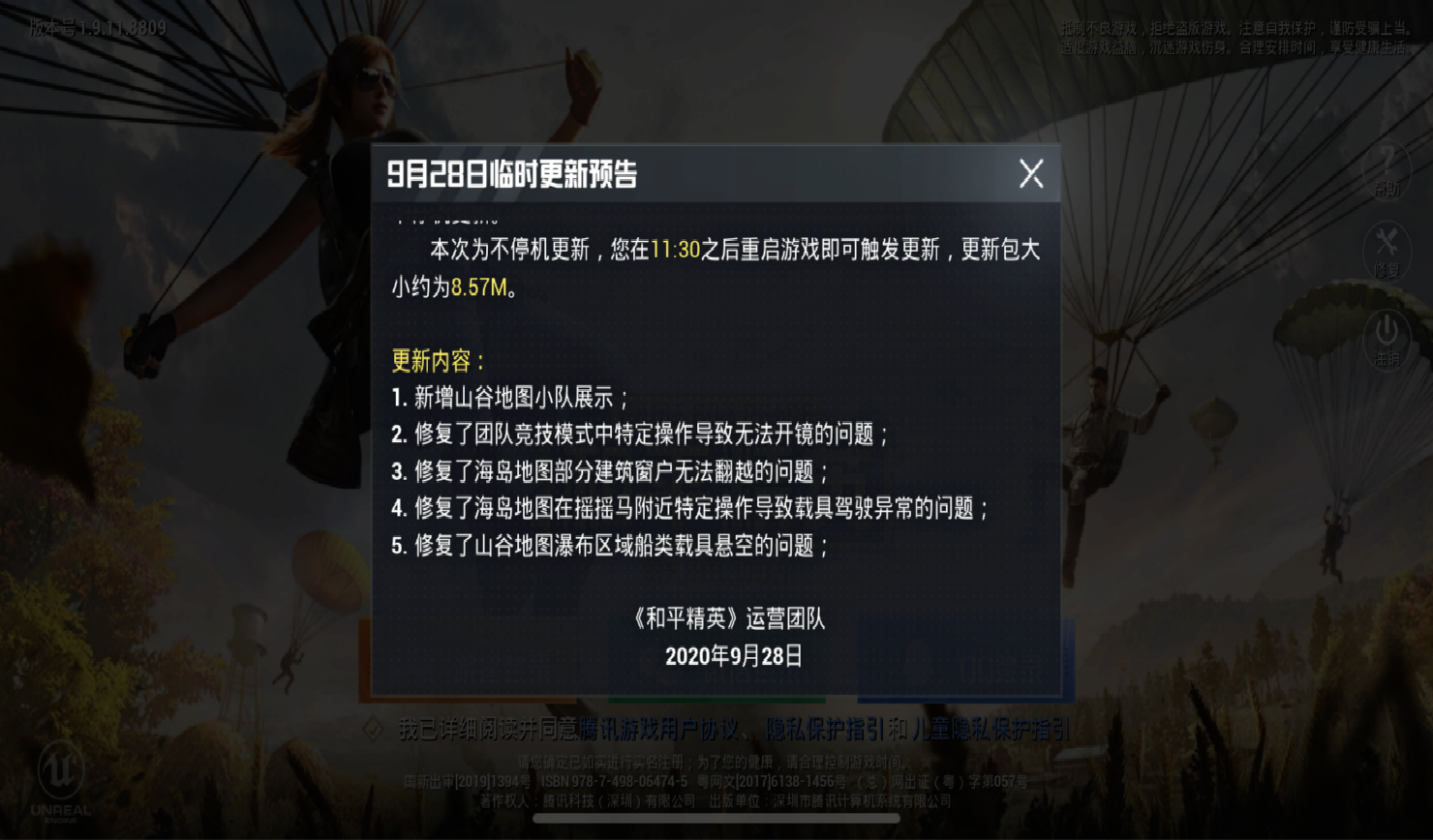 熟悉《和平精英》的老伙计们都知道,除了大版本更新之外,光子会时不时的带来一些“小更新”~现如今,这款游戏在新地图山谷上线的第3天,又迎来了一次仅有8.5M的小更新,但是却足足有5个更新内容,其中关于山谷地图的调整就有两处,团队竞技则有一处修复,海岛地图则是两处修复。