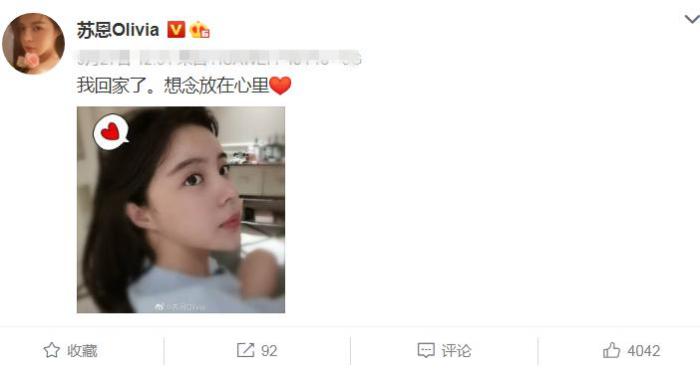 不过作为当事人,并且还拥有百万粉丝,苏恩也不得不做出部分回应。就在近日,苏恩在自己的动态里发布了自己的近照,并且还表示自己已经回家了,想念放在心里面。