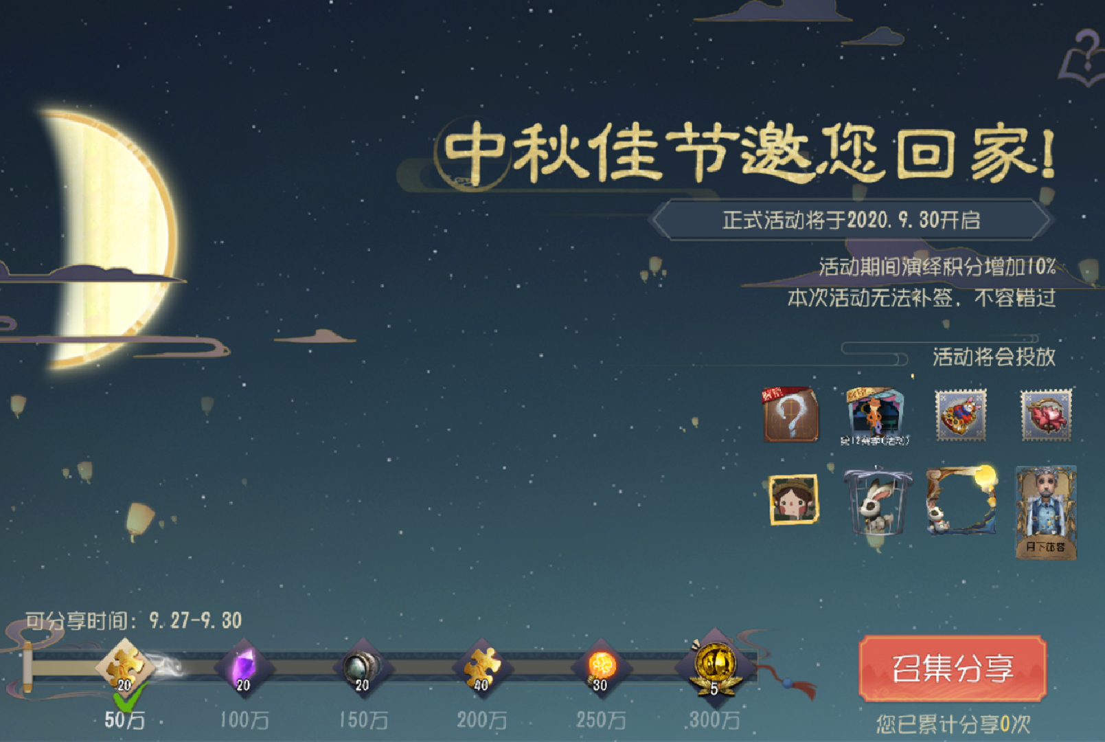 第五人格的节日活动规格其实一直对应着一些大小的节日,周年庆的级别和道具的奖励很多,任务的难度自然也会提升。就像是平常的小游戏一样,都是再简单不过的,而这次中秋节也是如此,当然了,奖励也是可以轻易拿到手的!