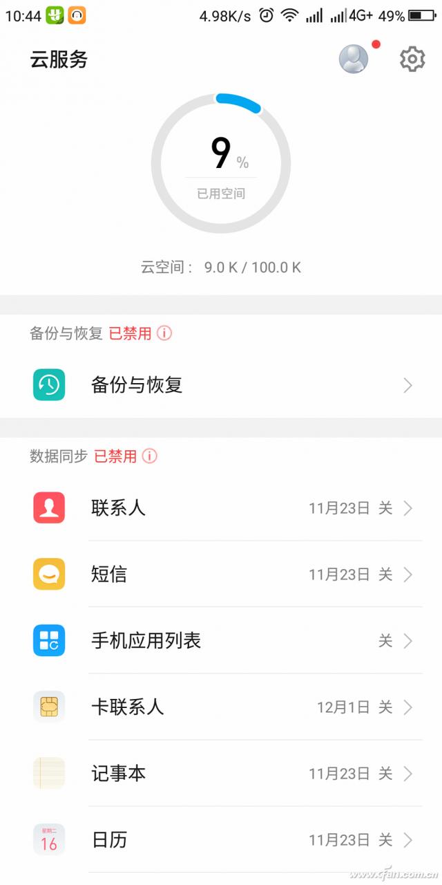 如今几乎所有Android手机都预装各自品牌的云服务功能,在这里也可以将包括联系人、短信、通话记录、记事本、闹钟等信息同步到云端服务器,而且可以开启自动备份功能,随时保证云端数据的时效性。