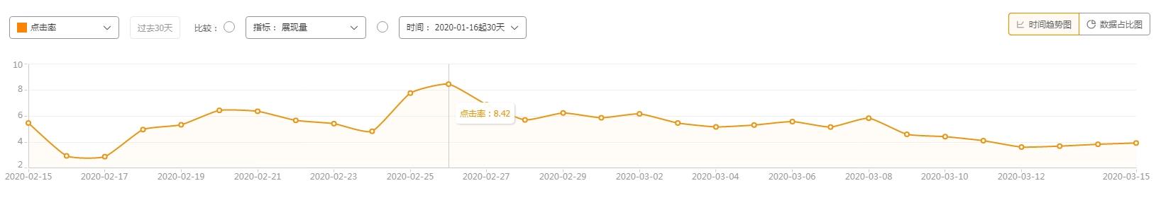 过去30天,点击率最高的时间段是:2月19到3月1号。