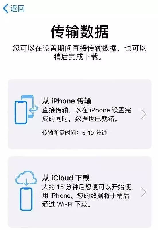 当然这还没完,在 iOS 12.4 中,苹果推出了「传输数据」功能,类似安卓的一键迁移 App,也是无需连接,新旧手机一匹配就可以传输数据。